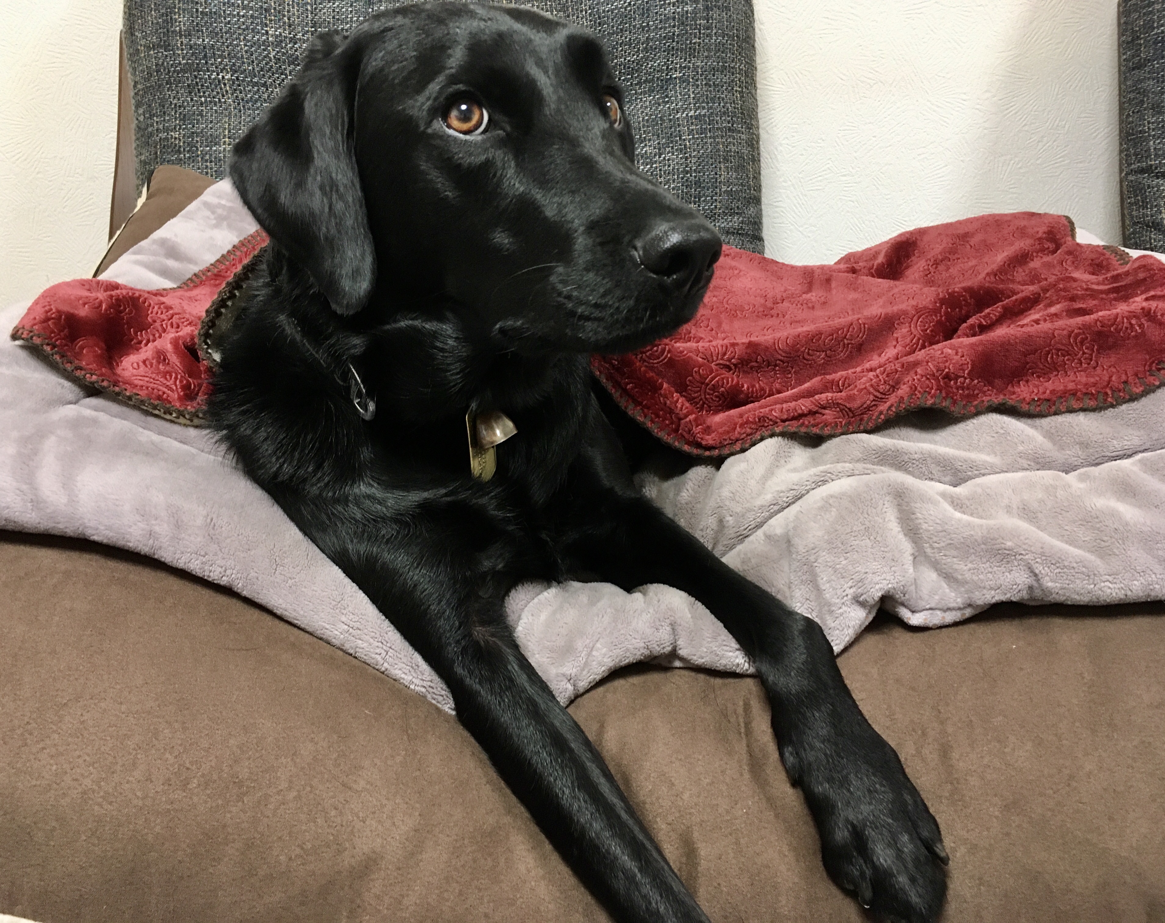 エマ、390円の毛布がバッチリ似合うね😆