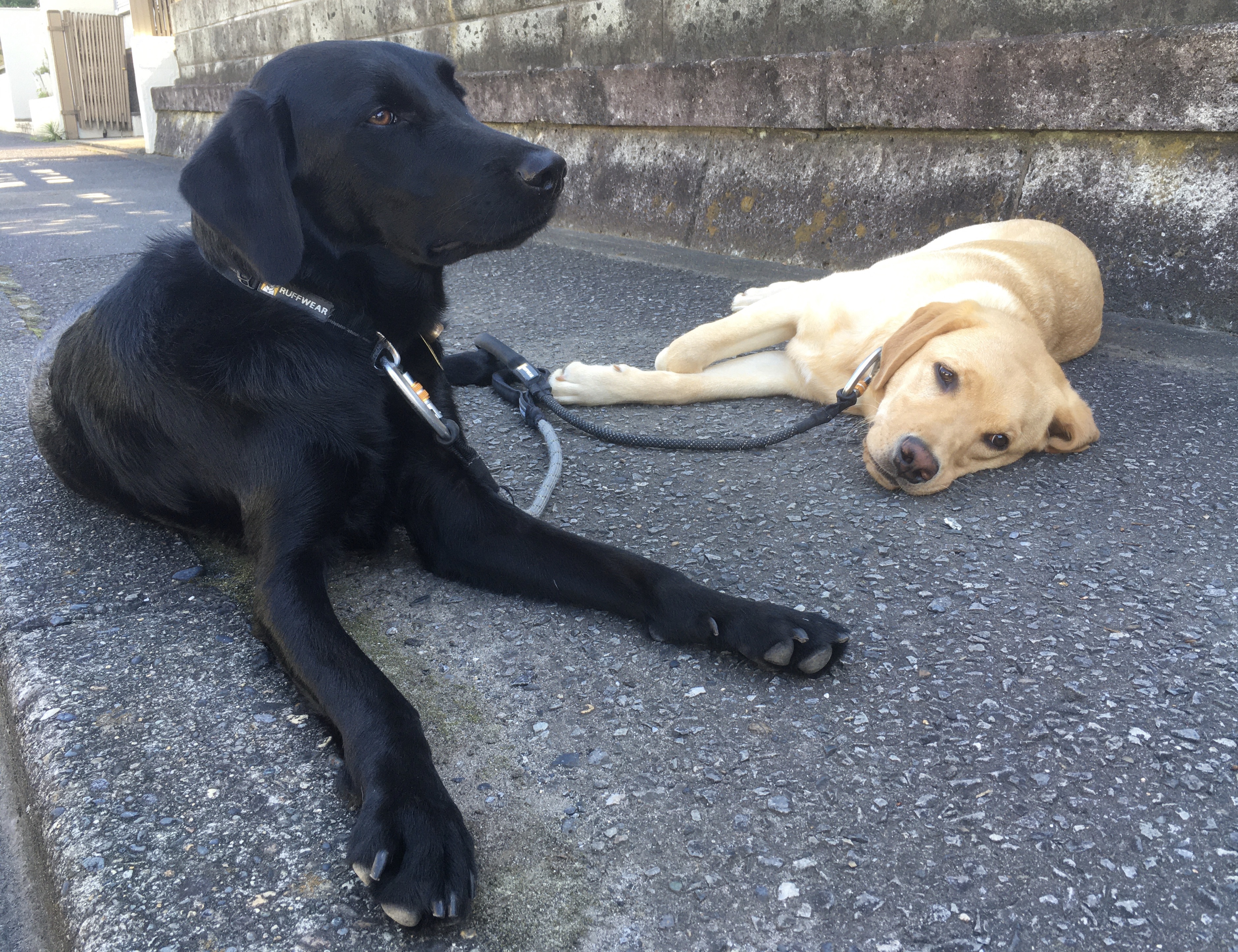 ボクと薄茶は、この涼しい歩道でひと休み。