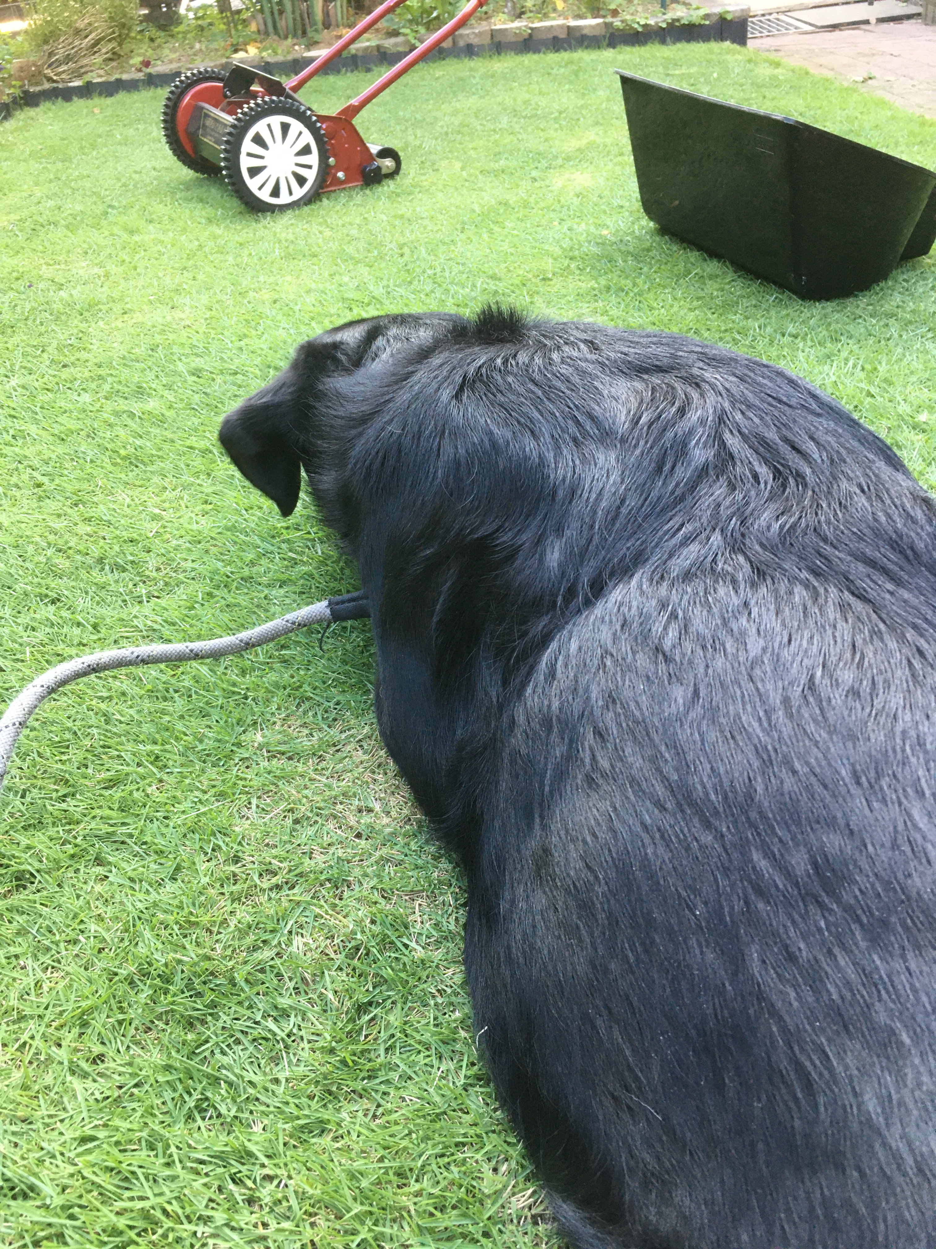 エマ、芝刈り機との勝負は持ち越しだね😅
