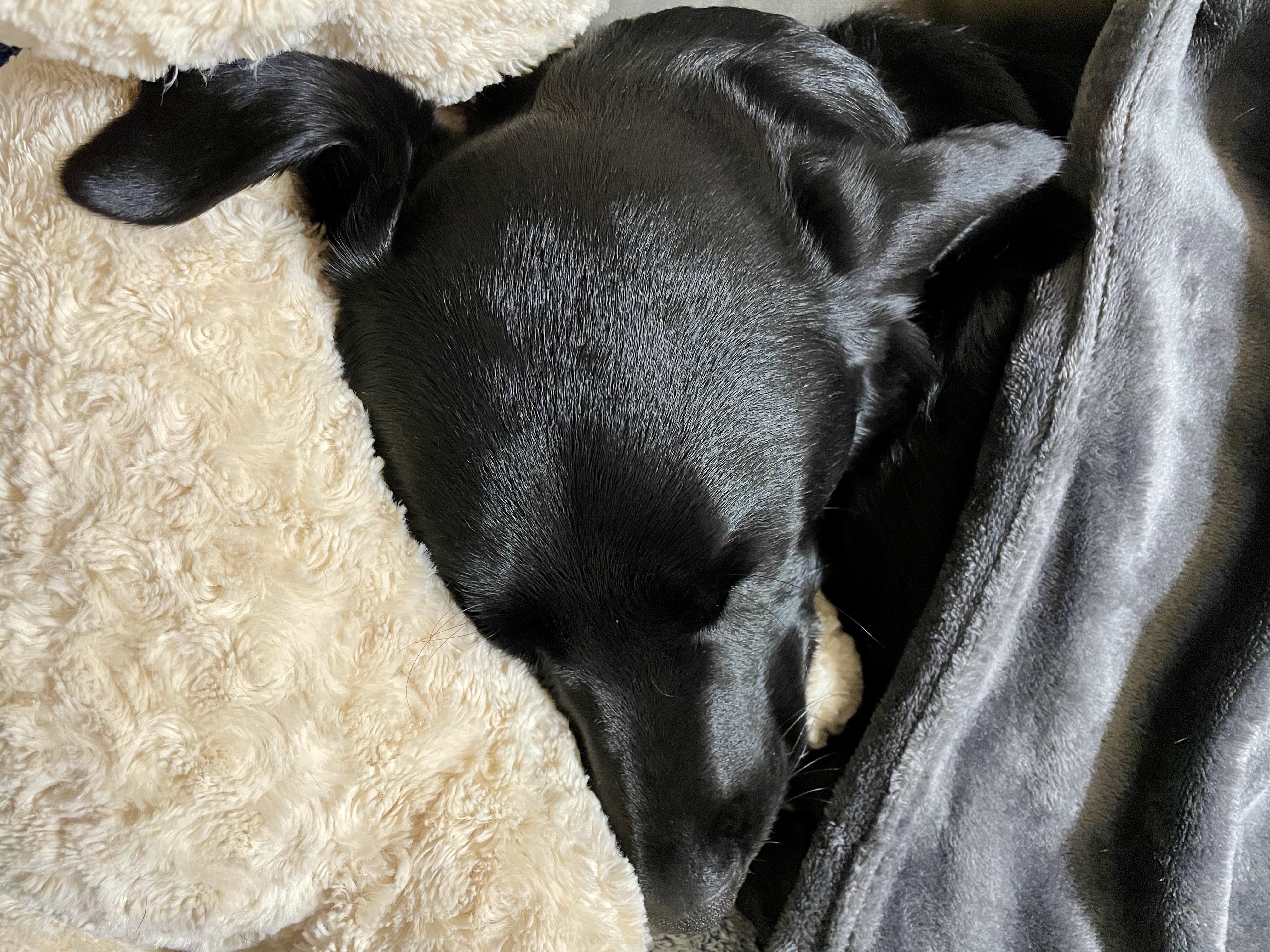 シャンプー後のエマ、すべすべツヤツヤ。