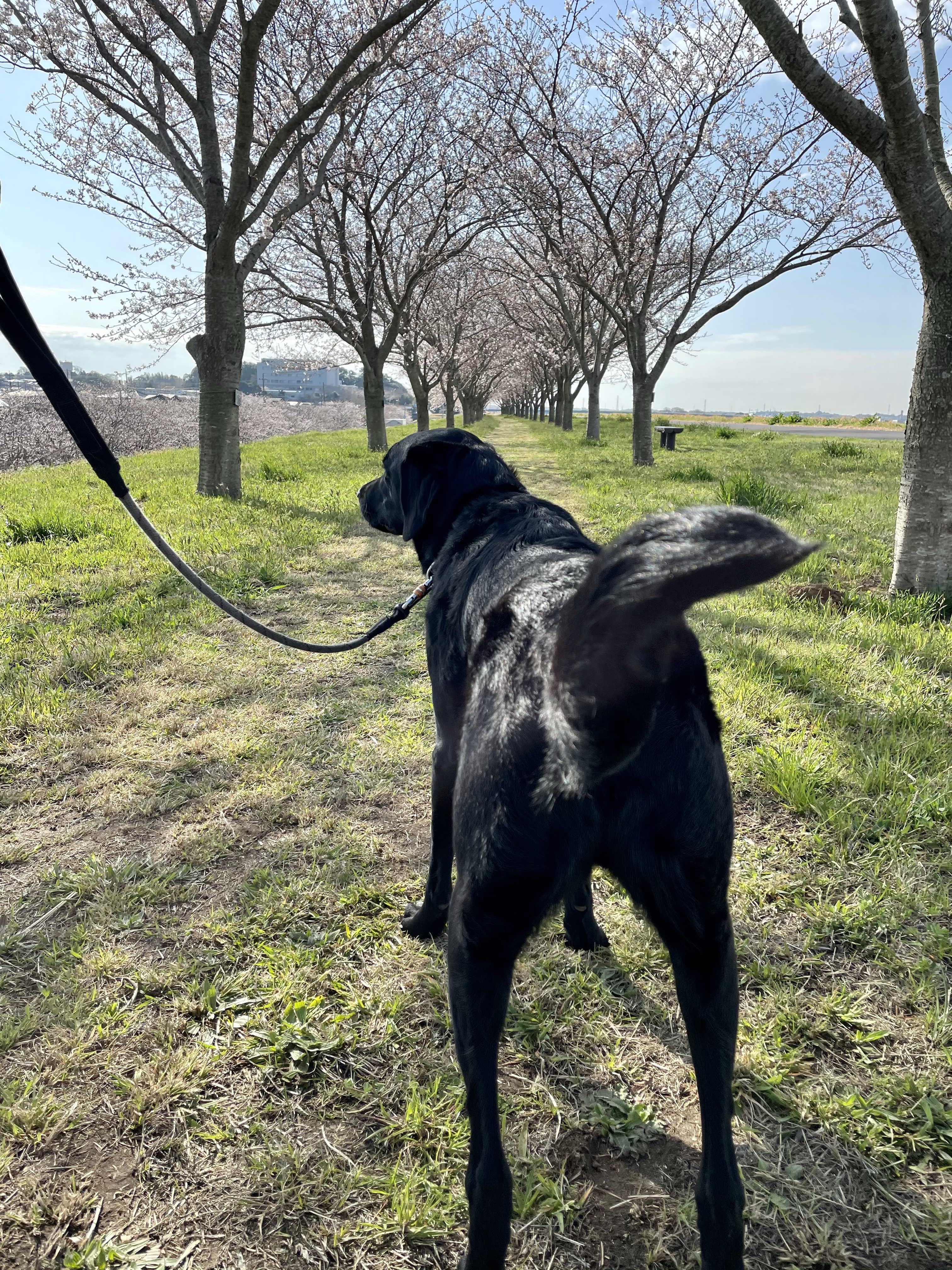 今日は朝、近くの川の桜堤をお散歩。