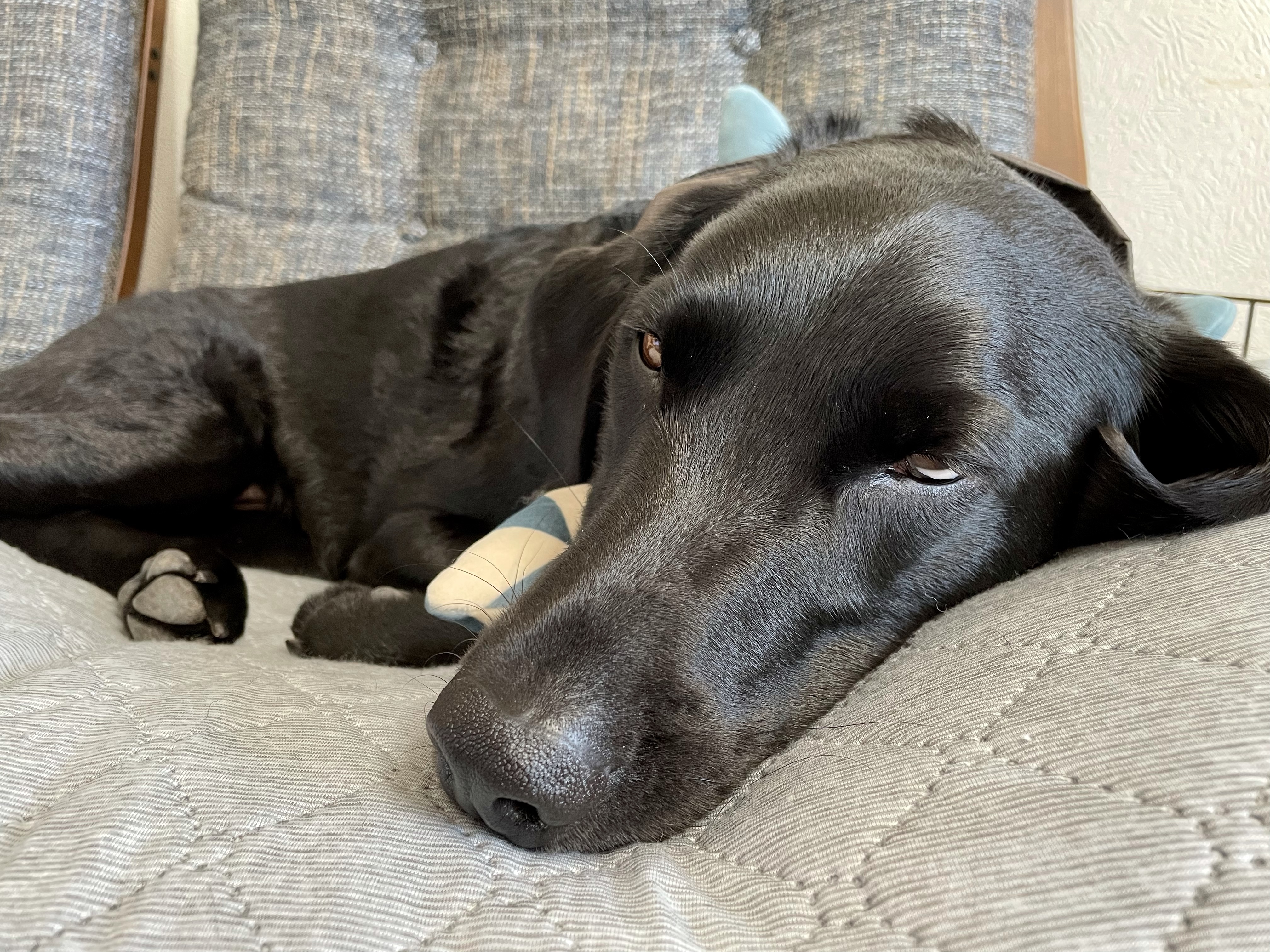 早朝散歩した後は、クーラー部屋で
