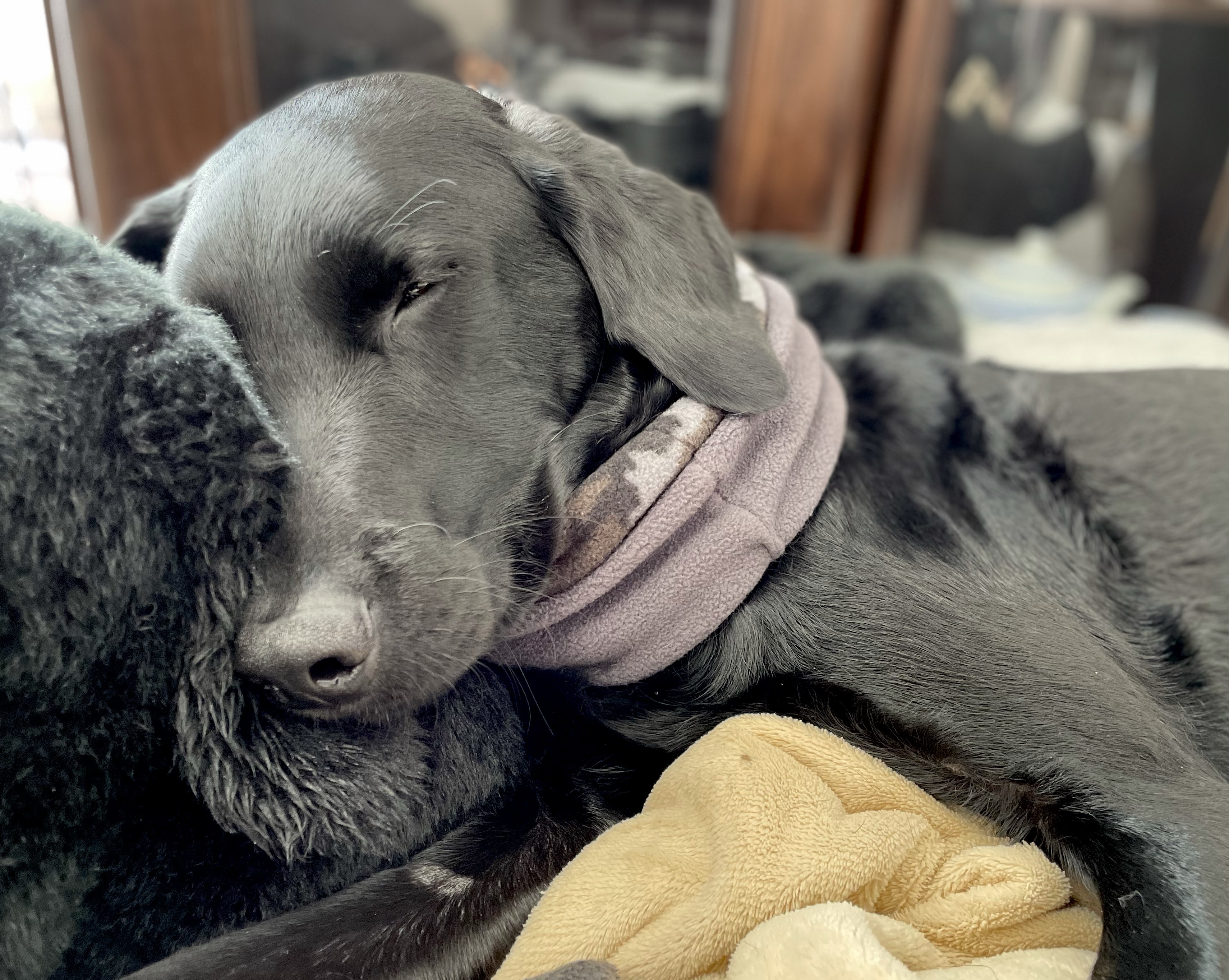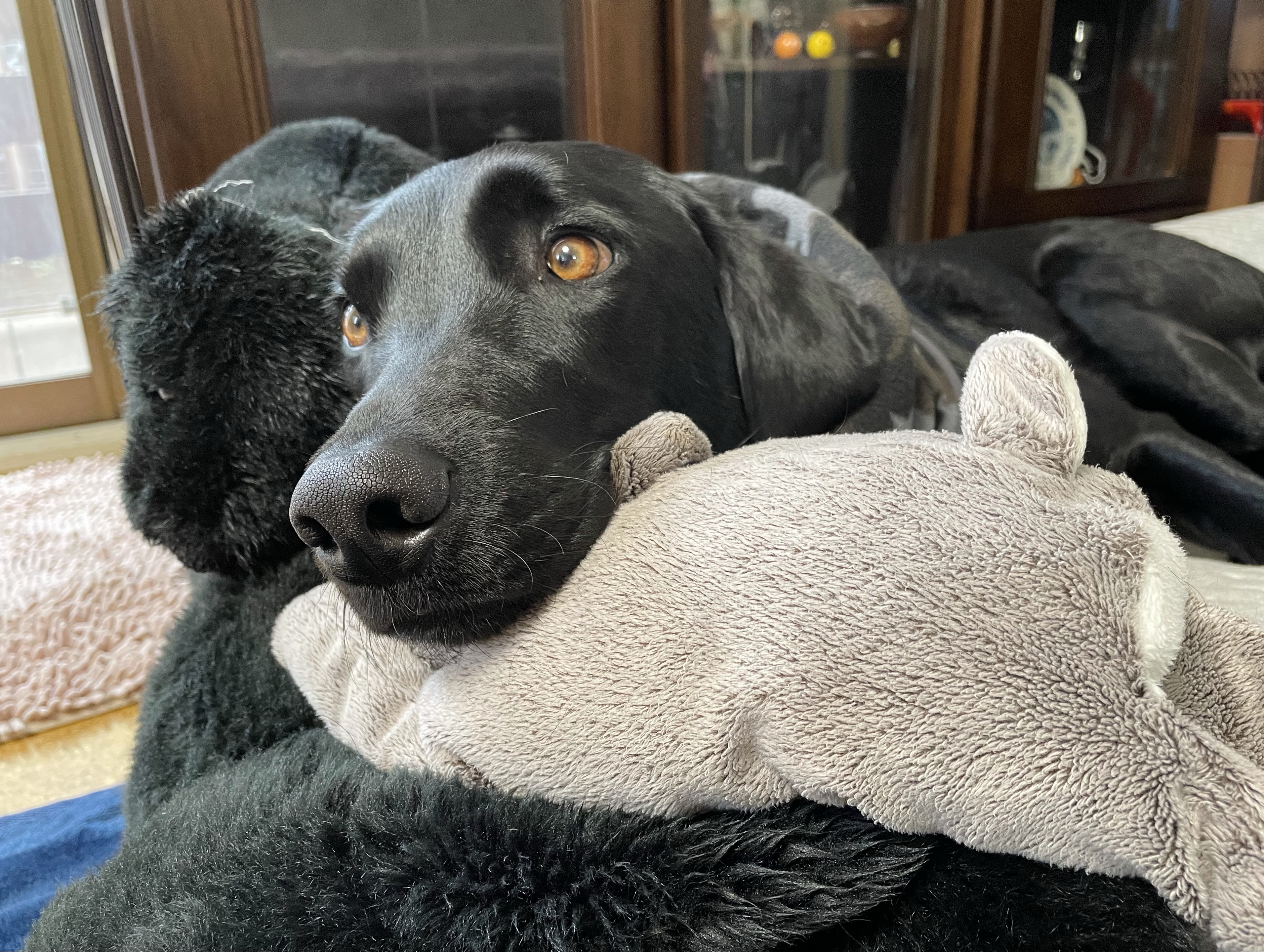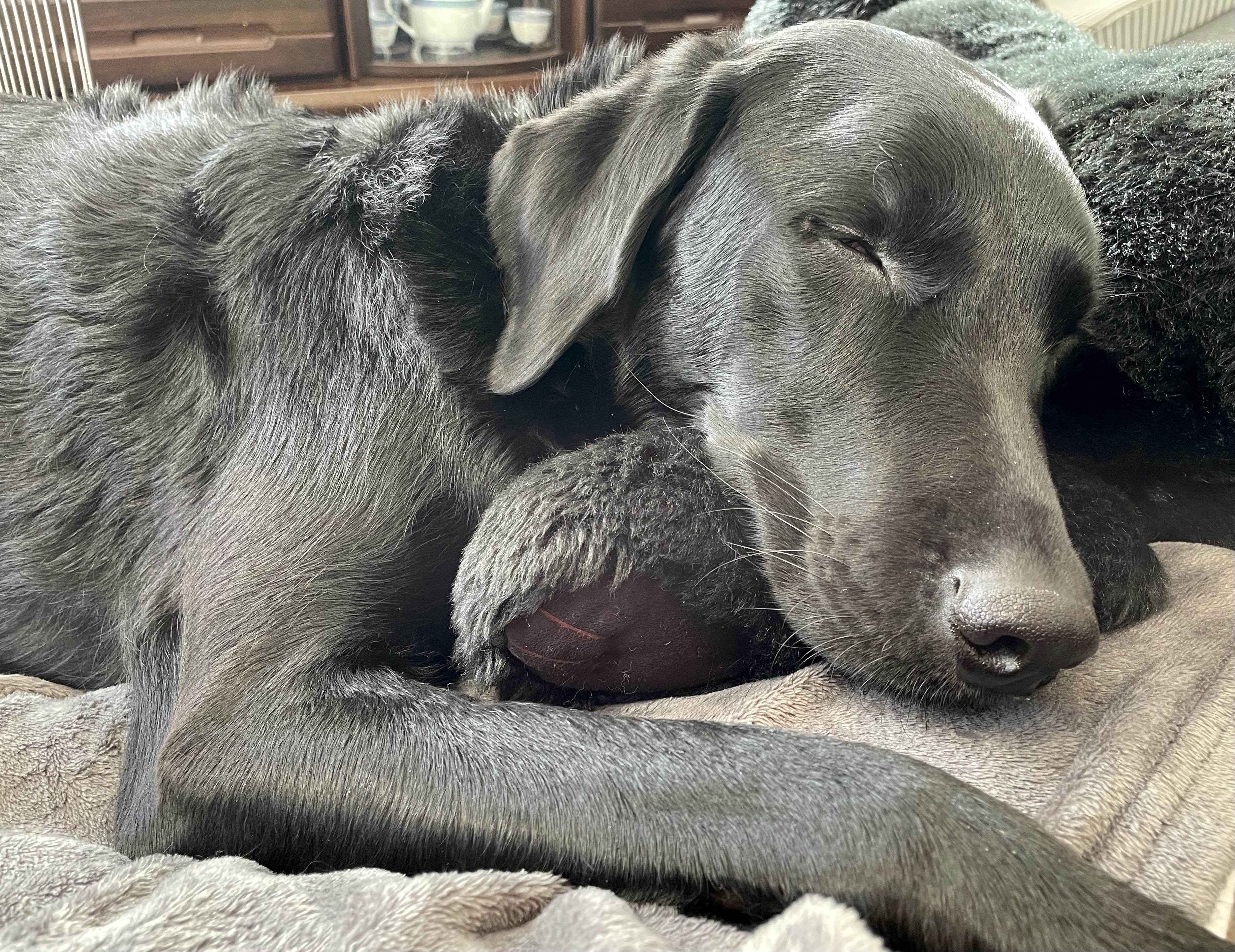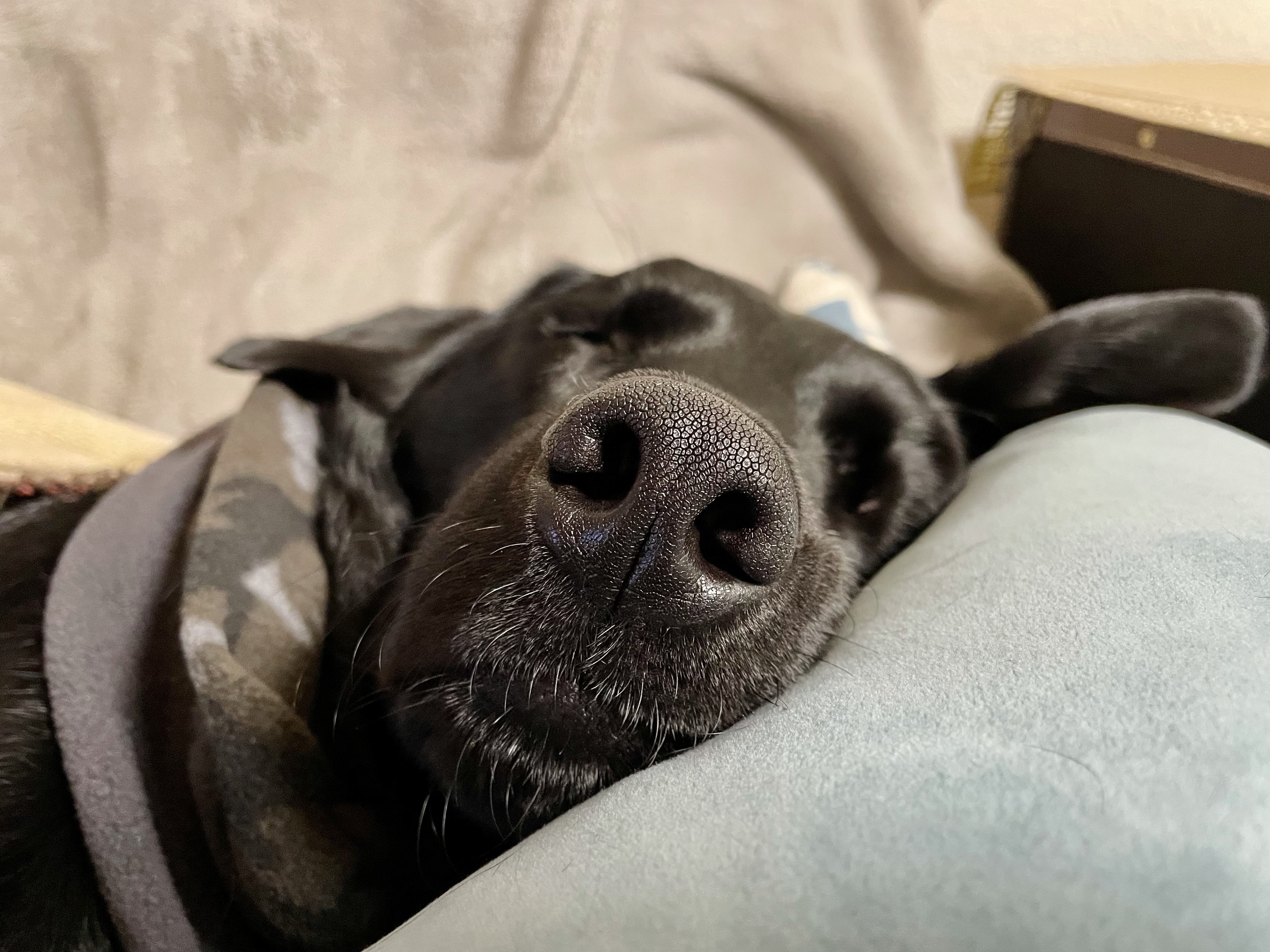 エマ、クロちゃん枕にしての😴