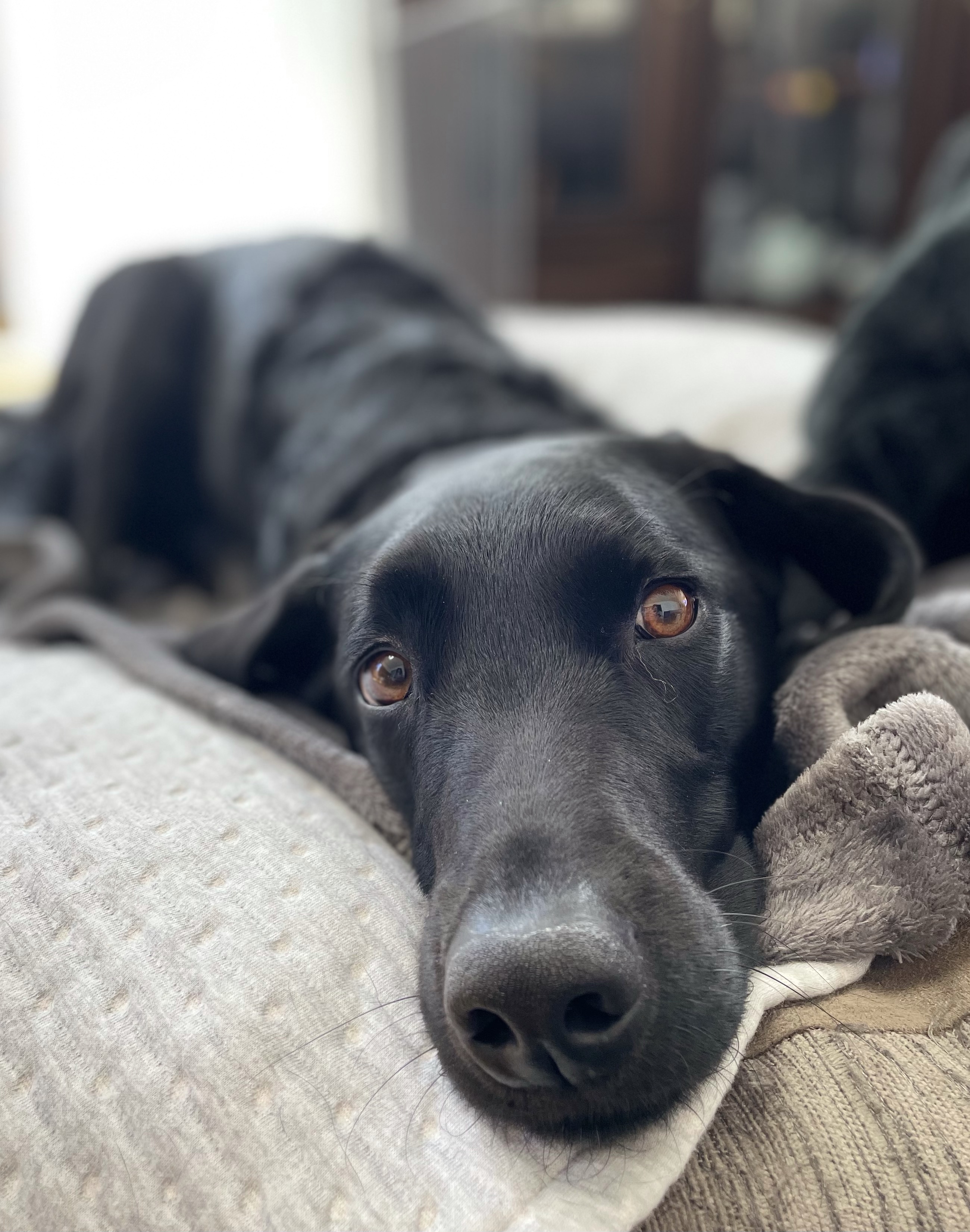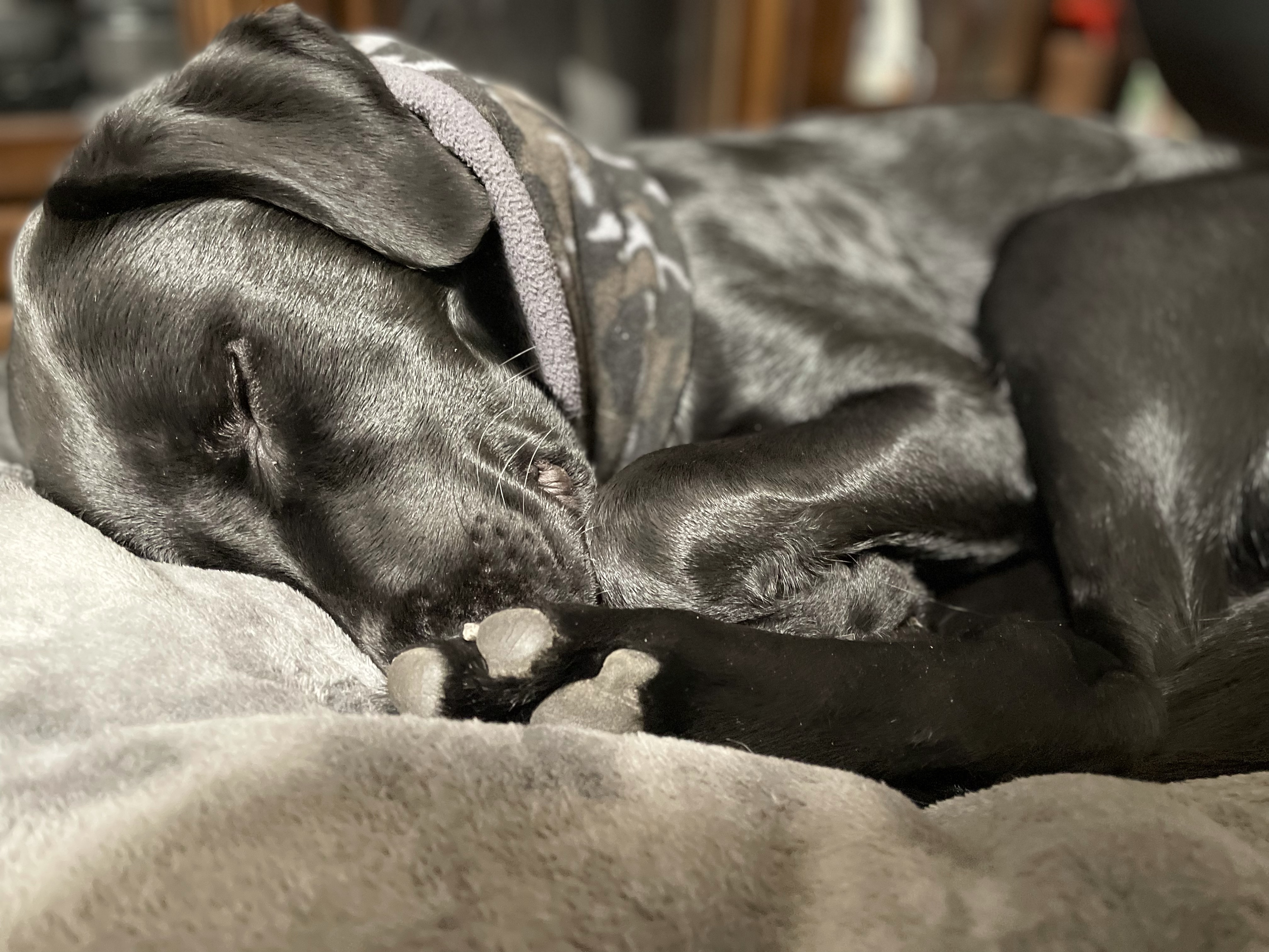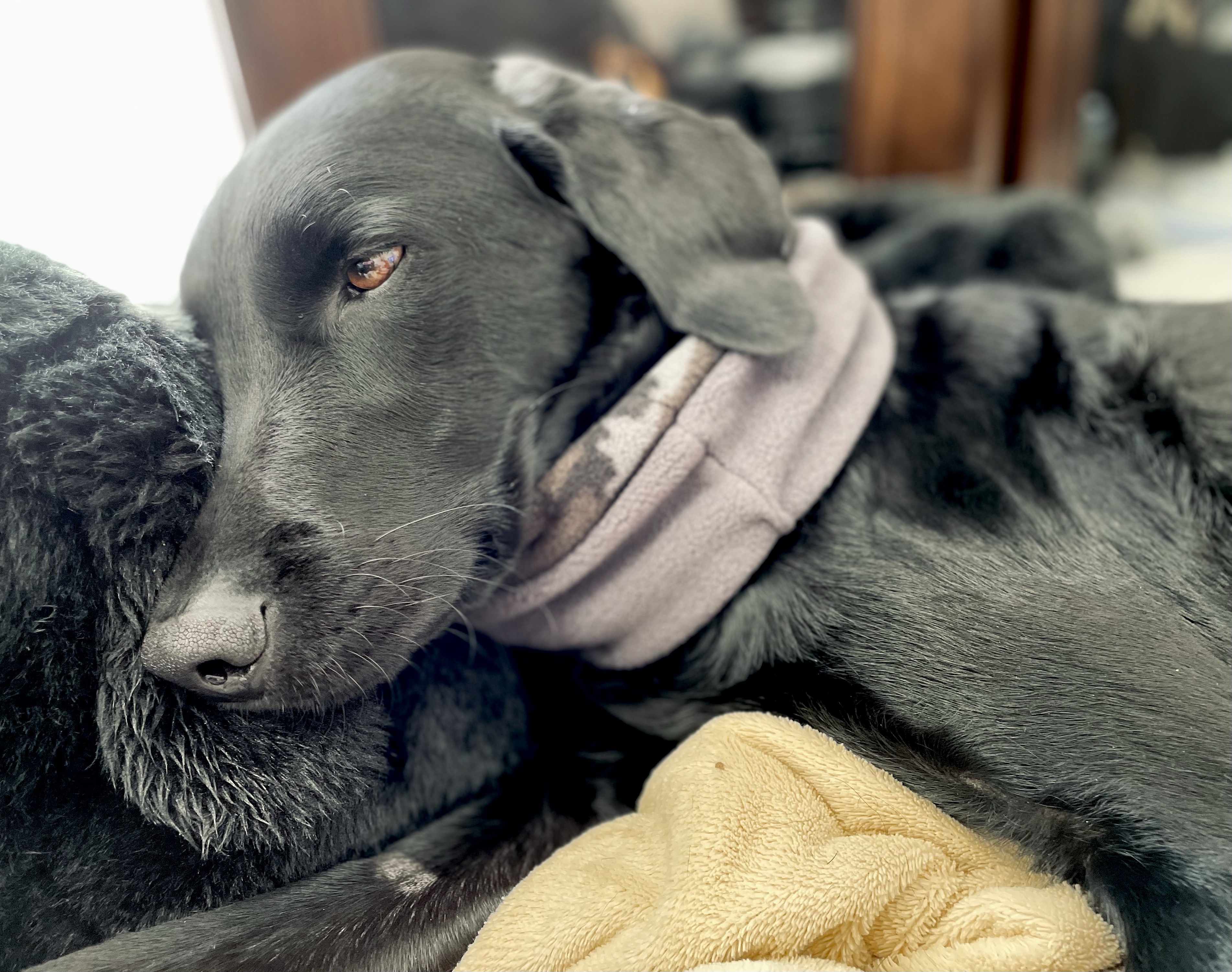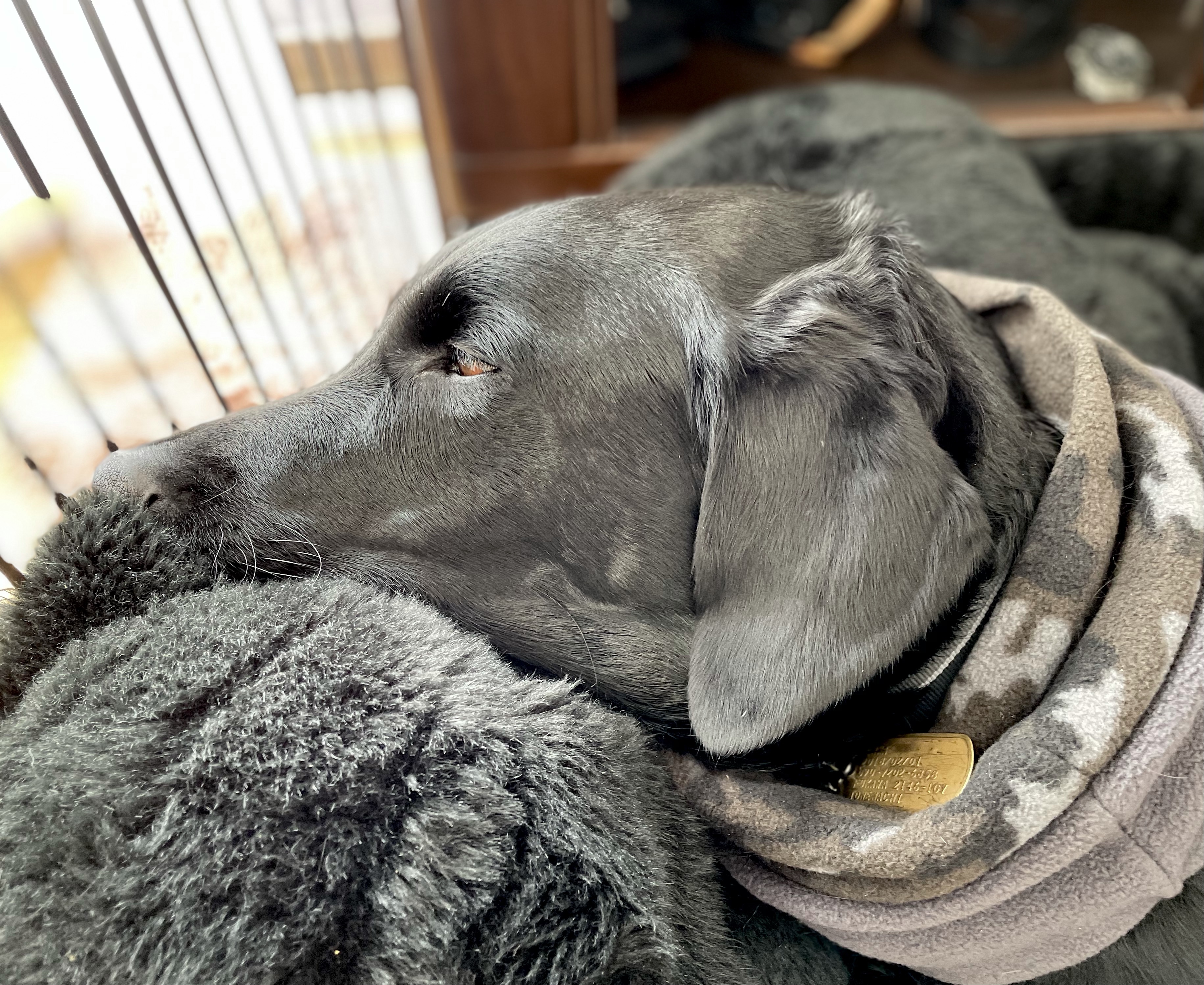 エマ、クロちゃん枕にしての😴