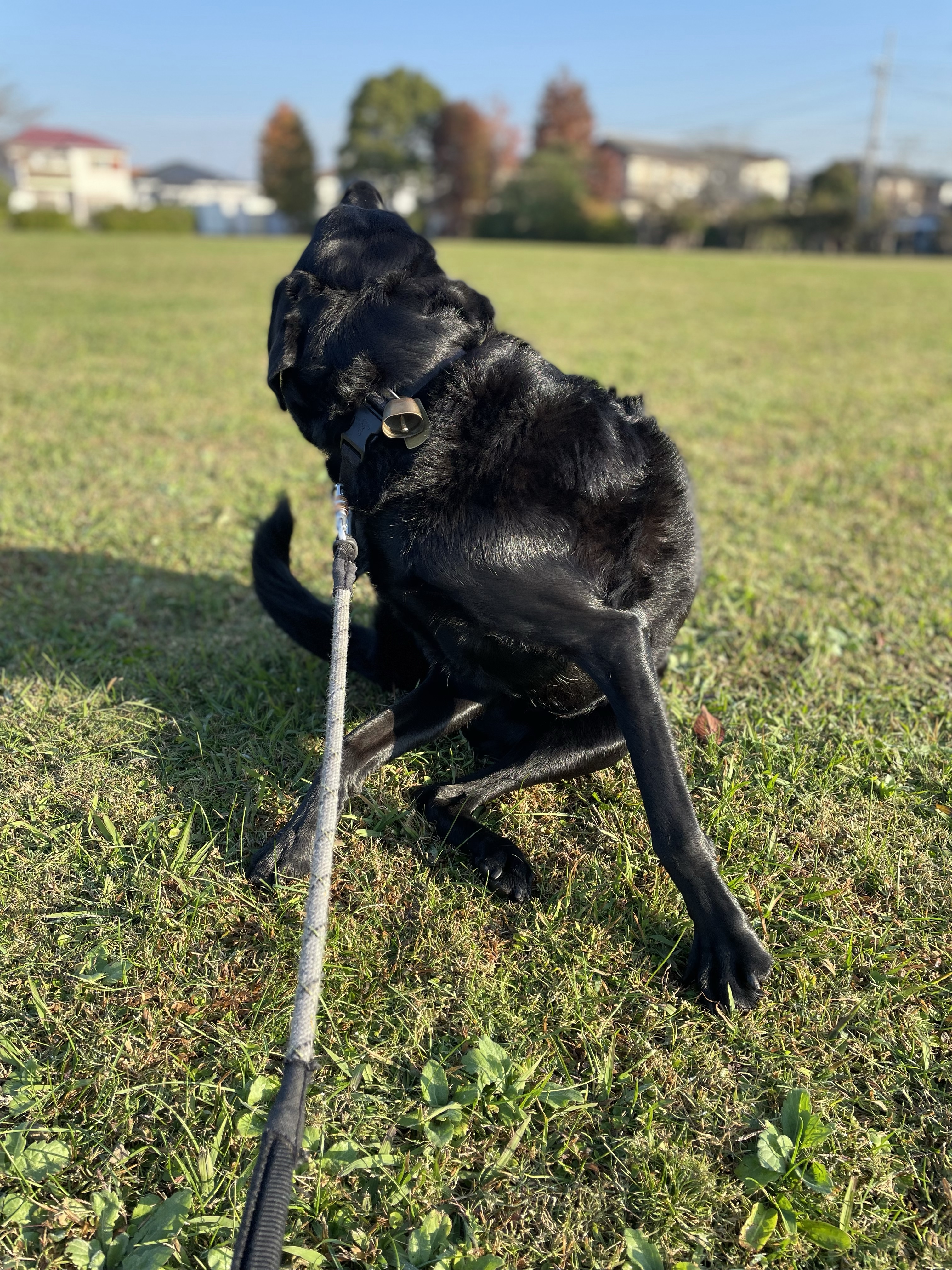 朝のお散歩の公園で爽快カイカイ