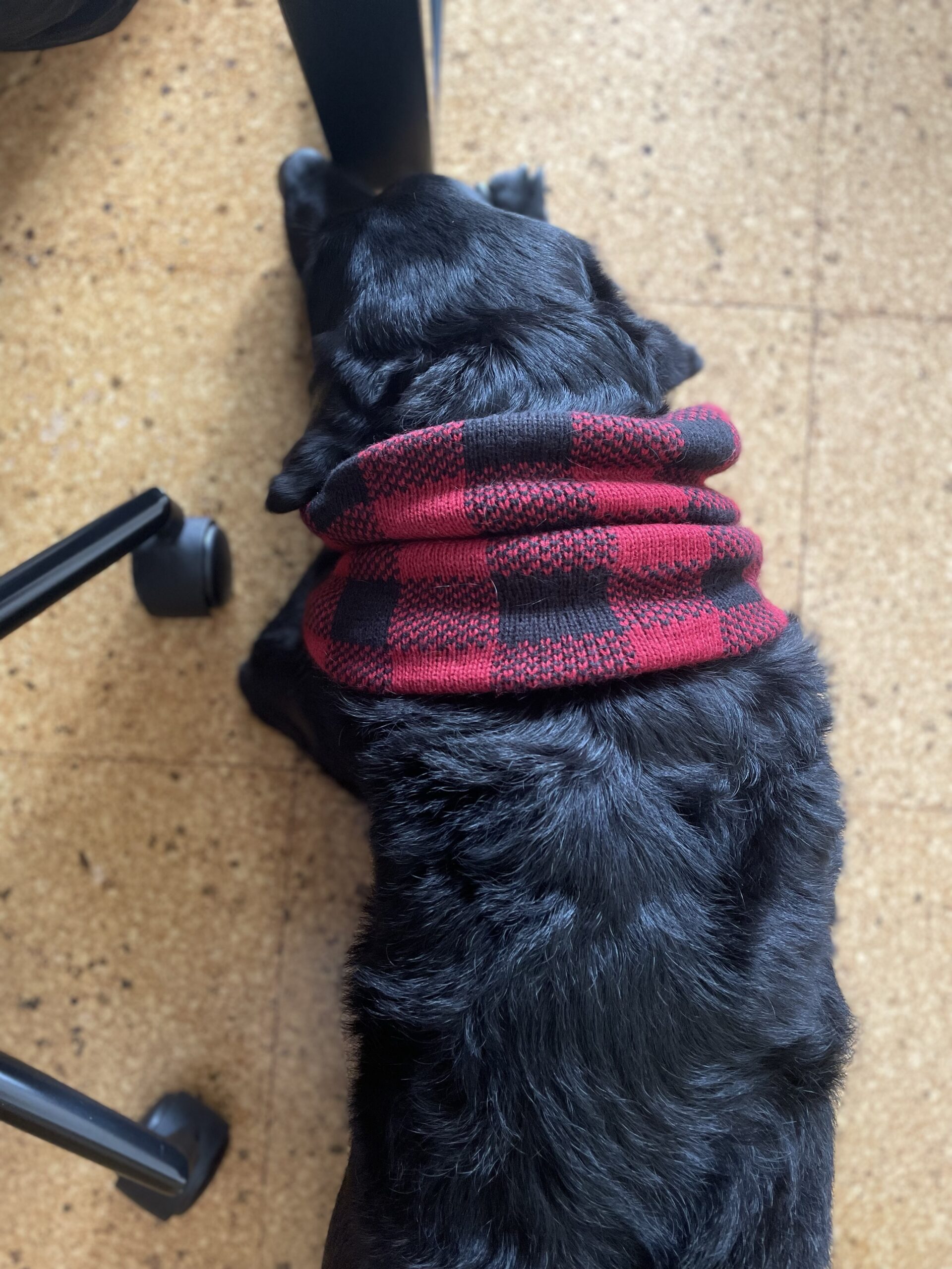 机の足元で待機