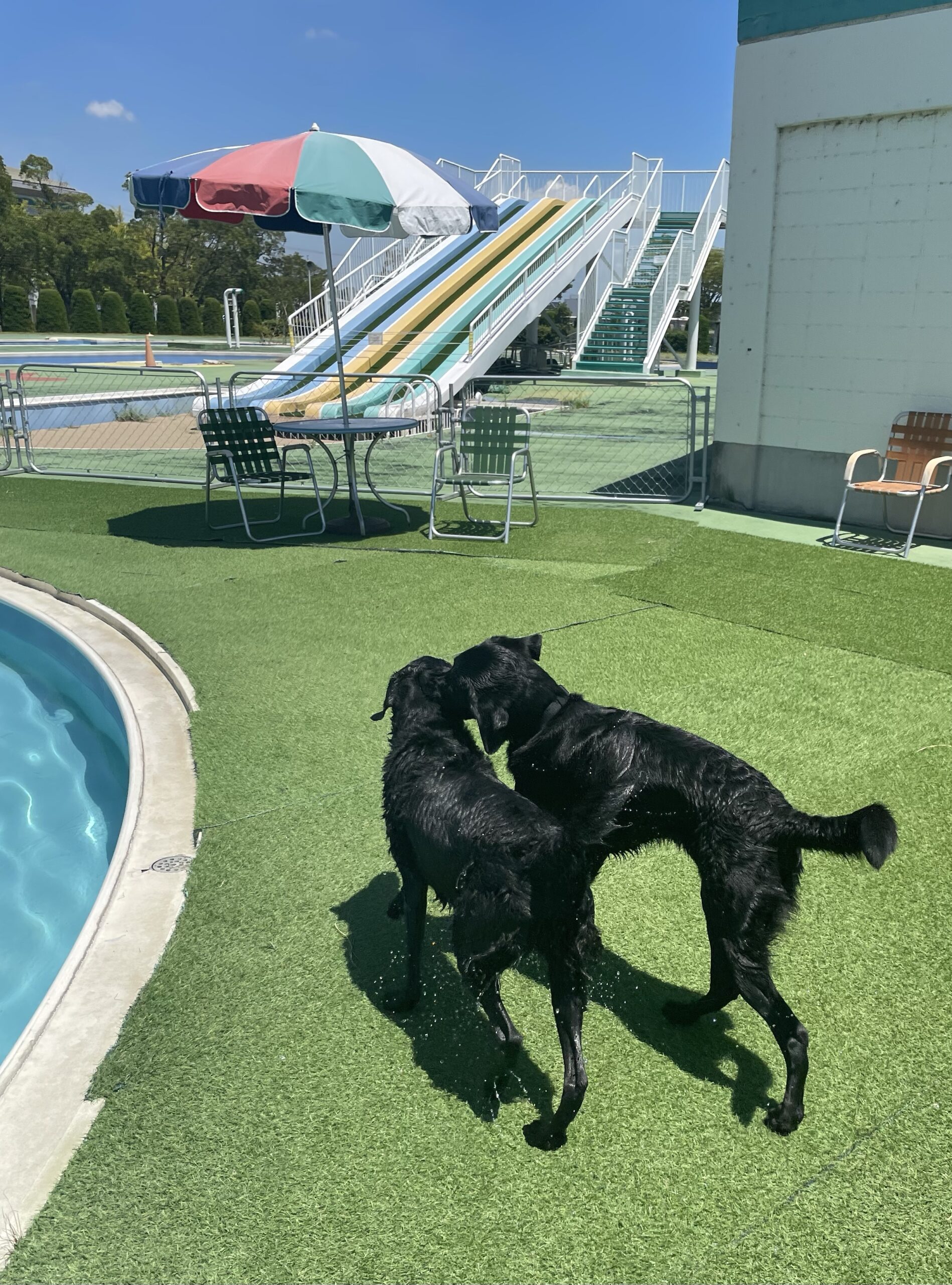 プールサイドも人工芝になってました