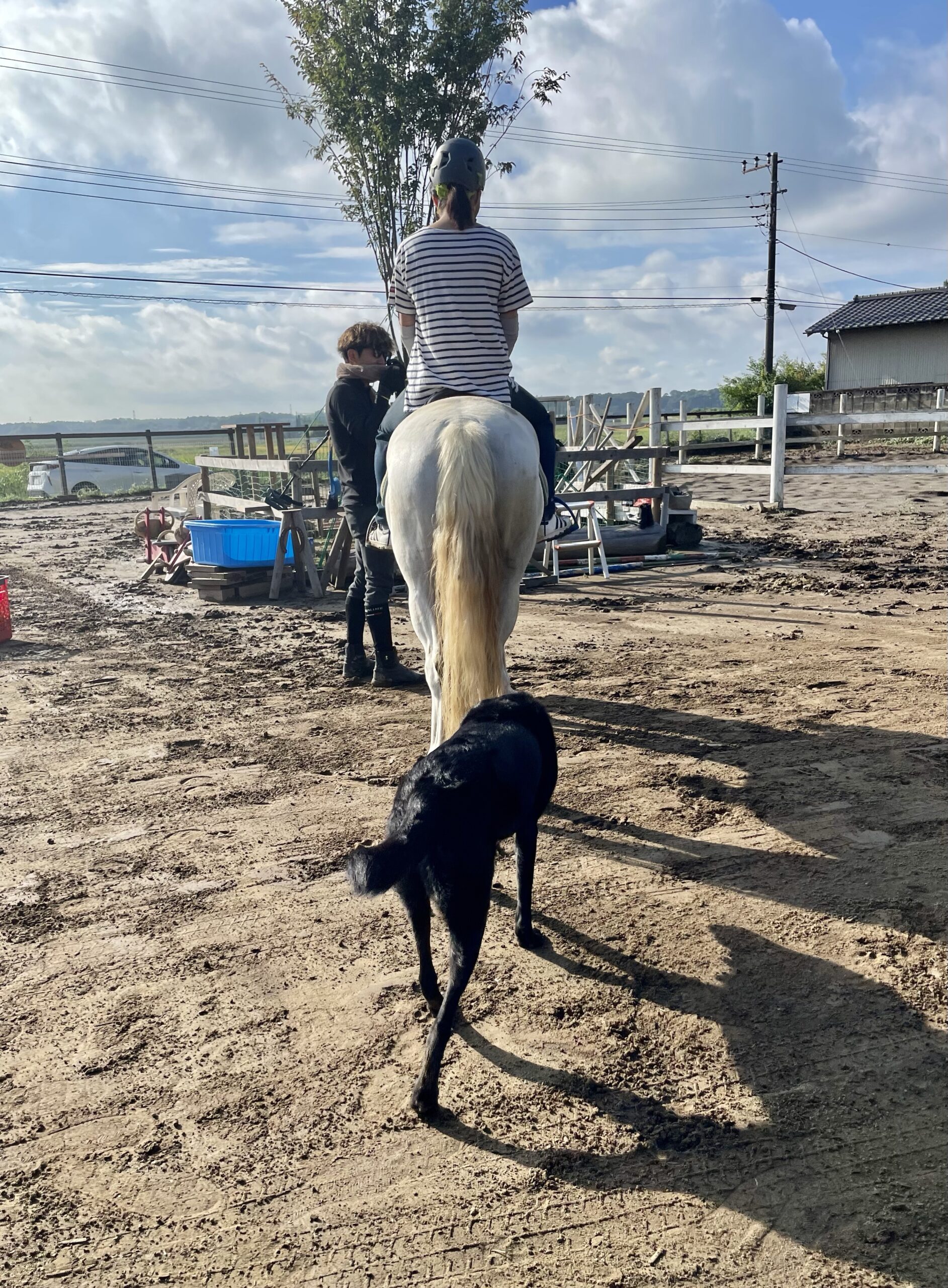 馬の後に続くエマ、後ろは危ないよー