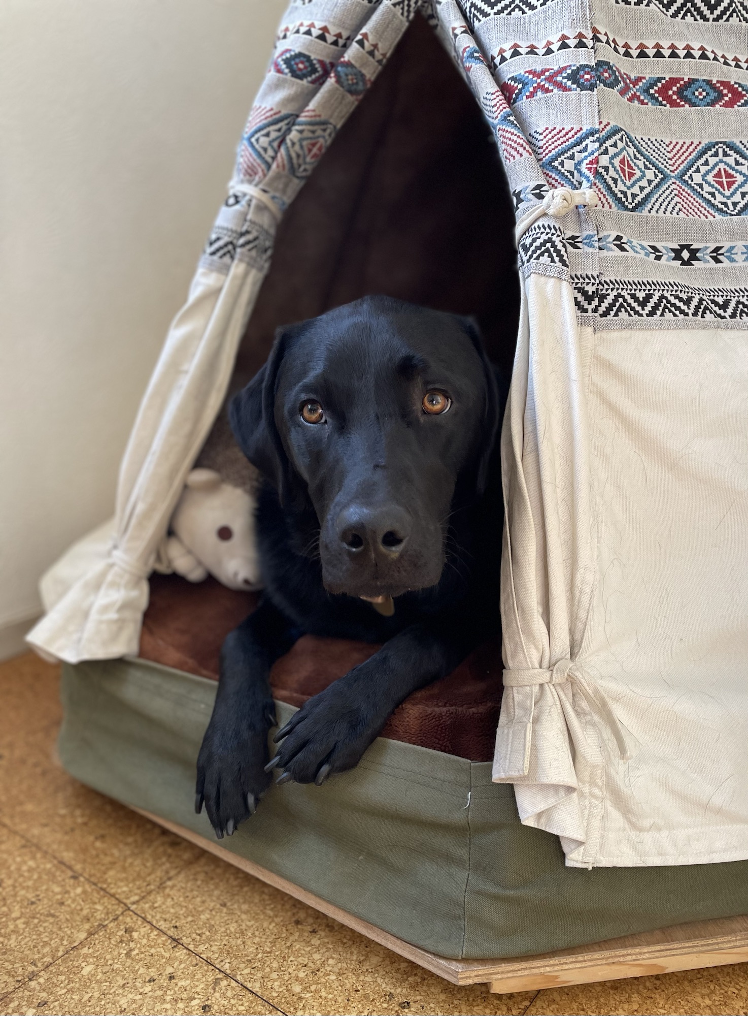 モーちゃんはお部屋のティピに入って、