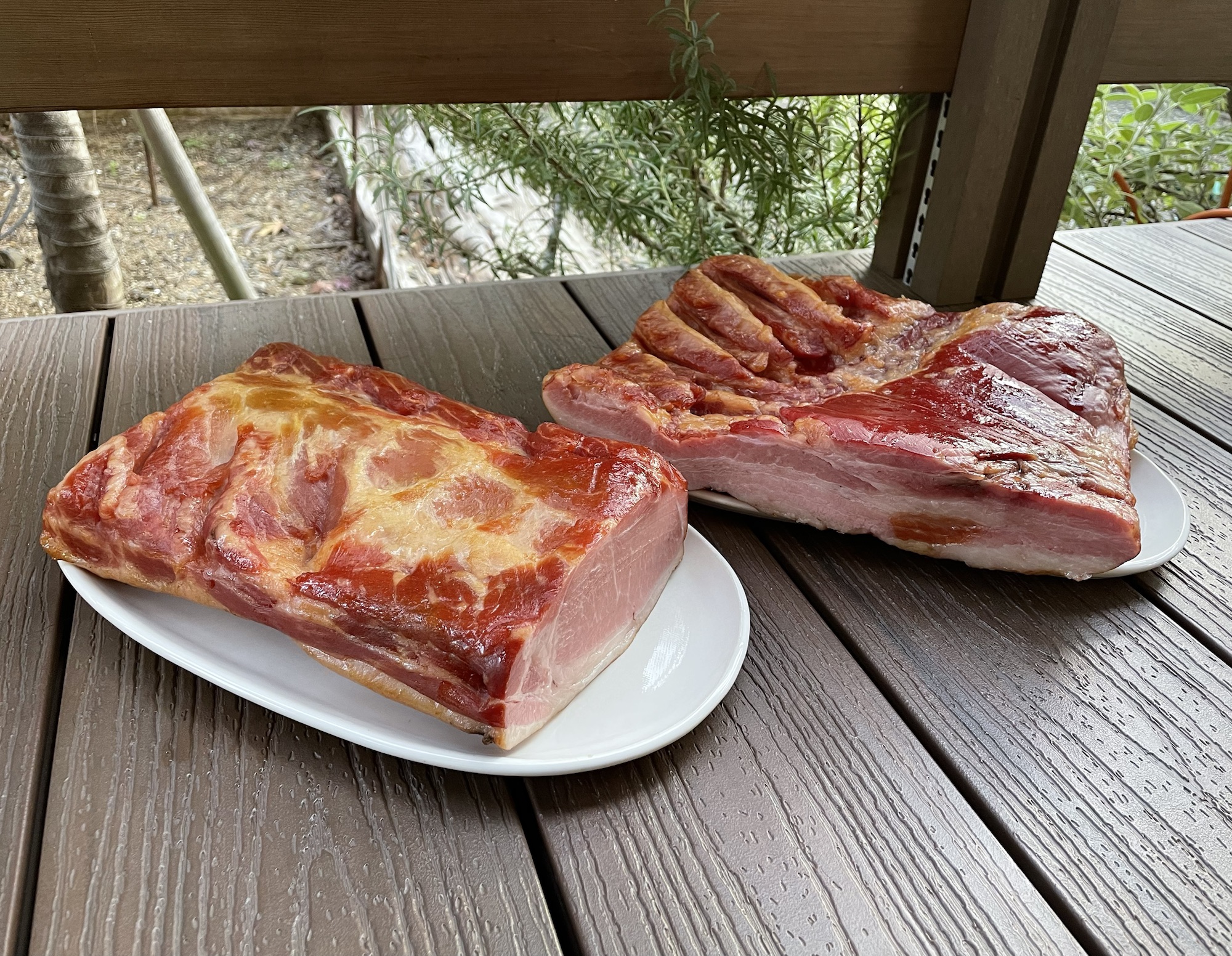 今日はお庭でベーコンを燻製🥓