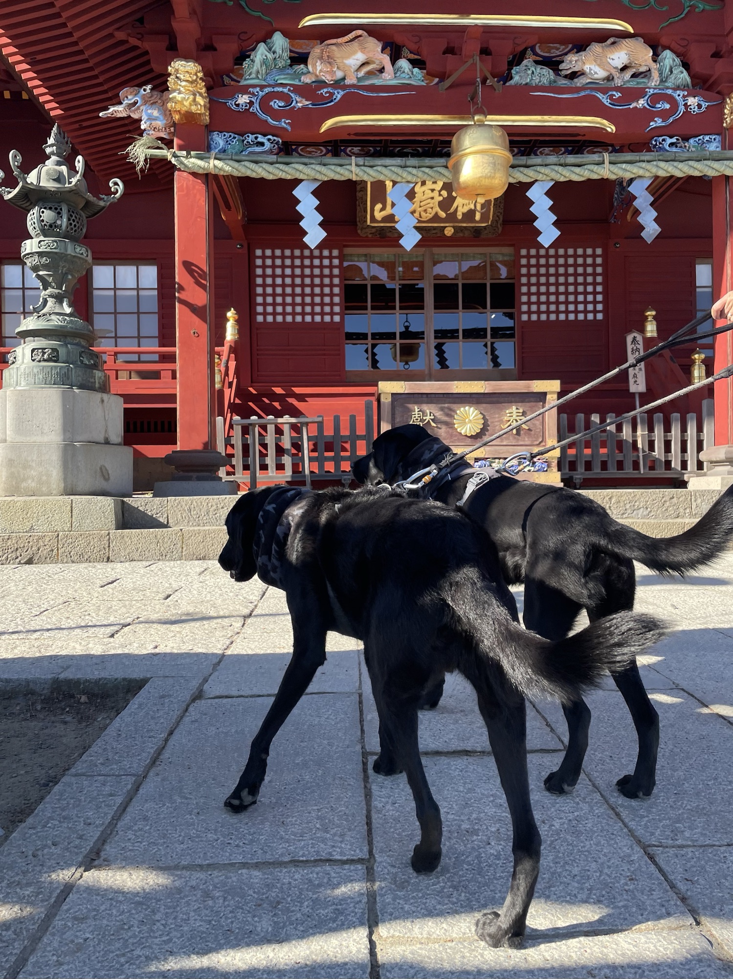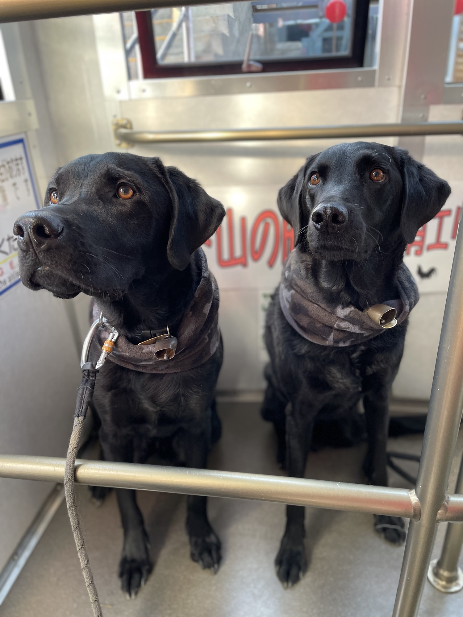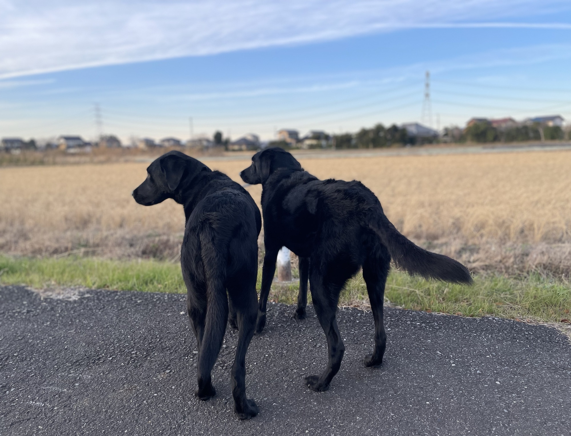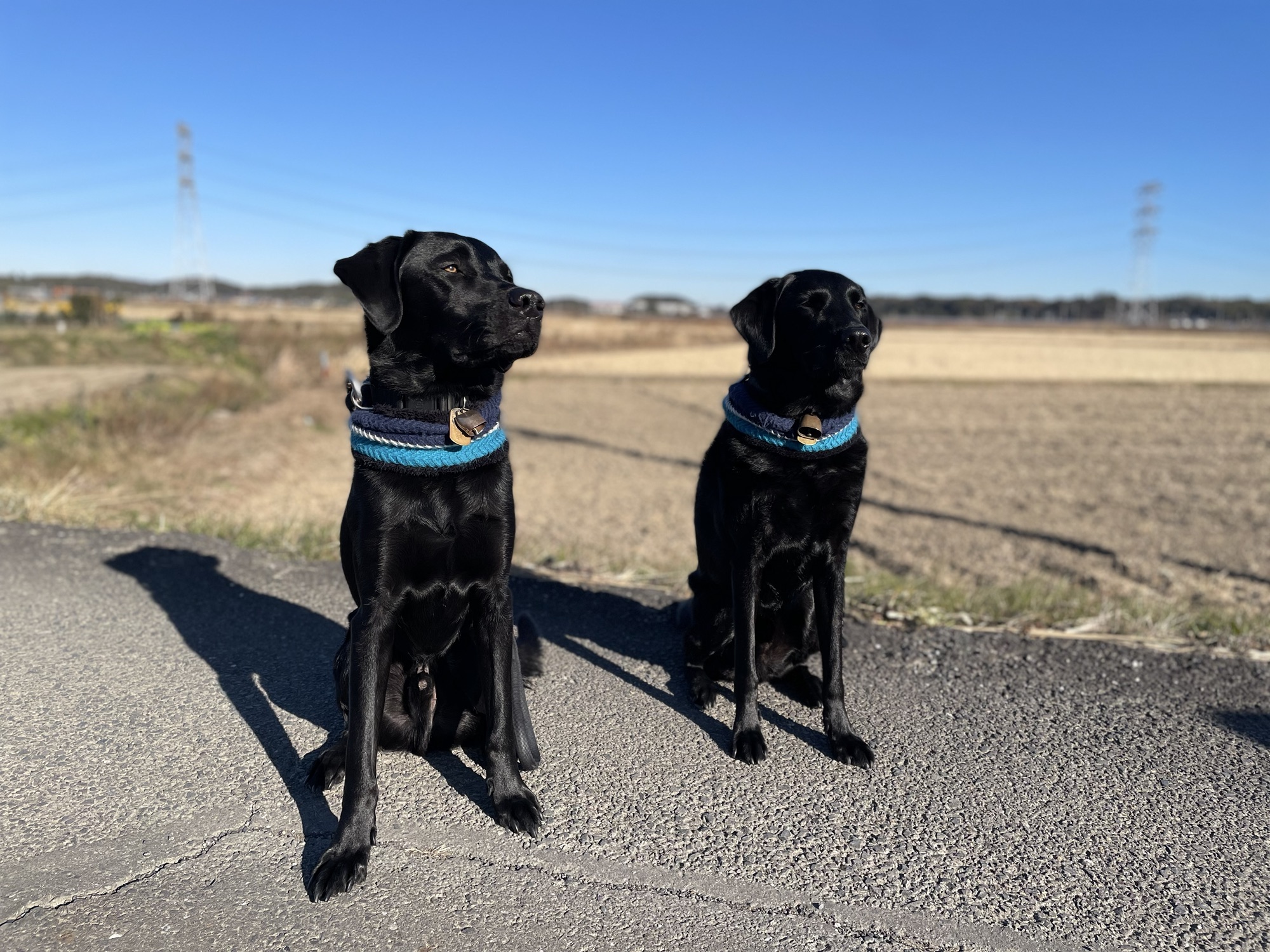 朝の2頭引きお散歩中、