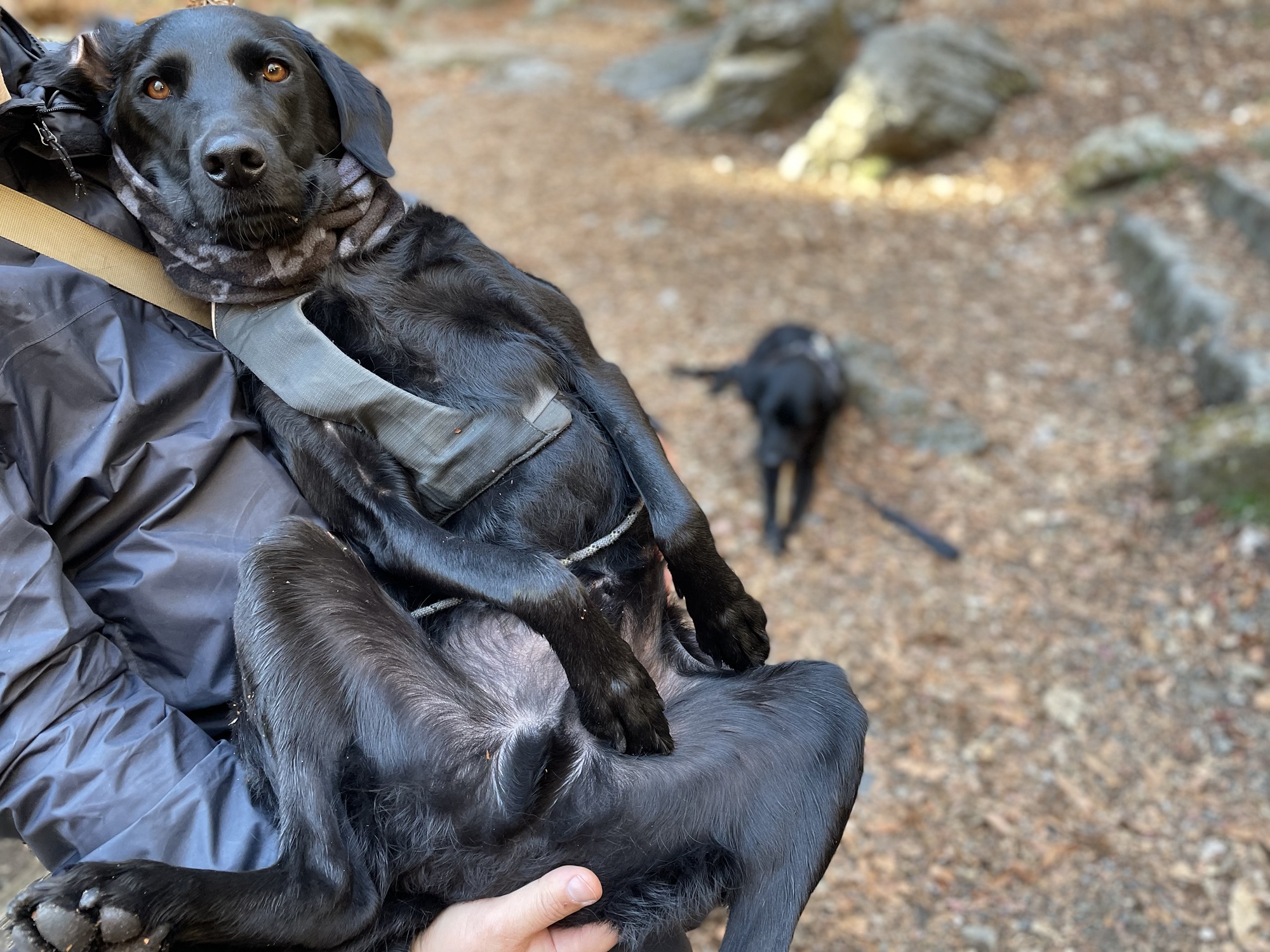 途中、休憩タイムではへそ天抱っこちゃん
