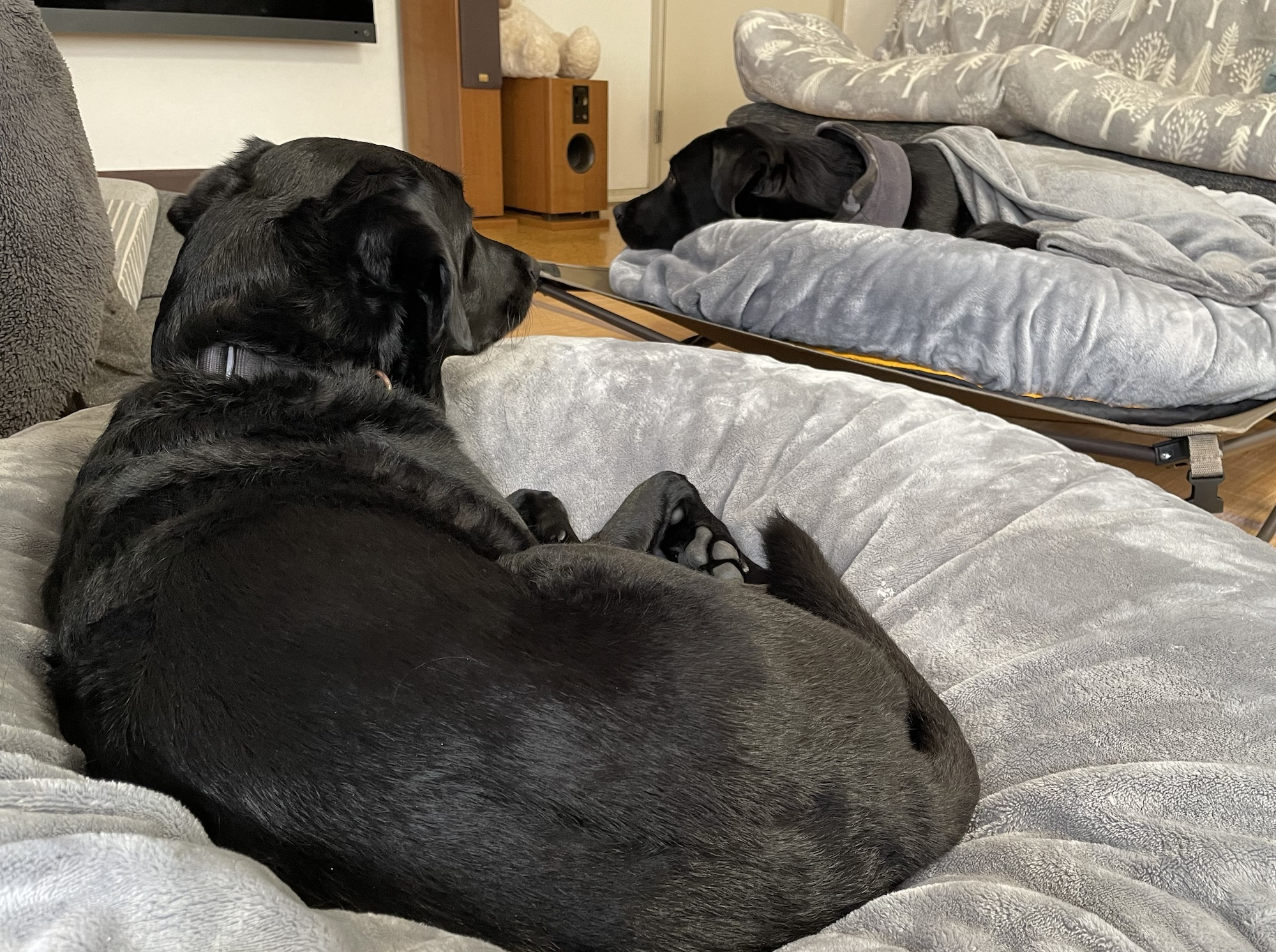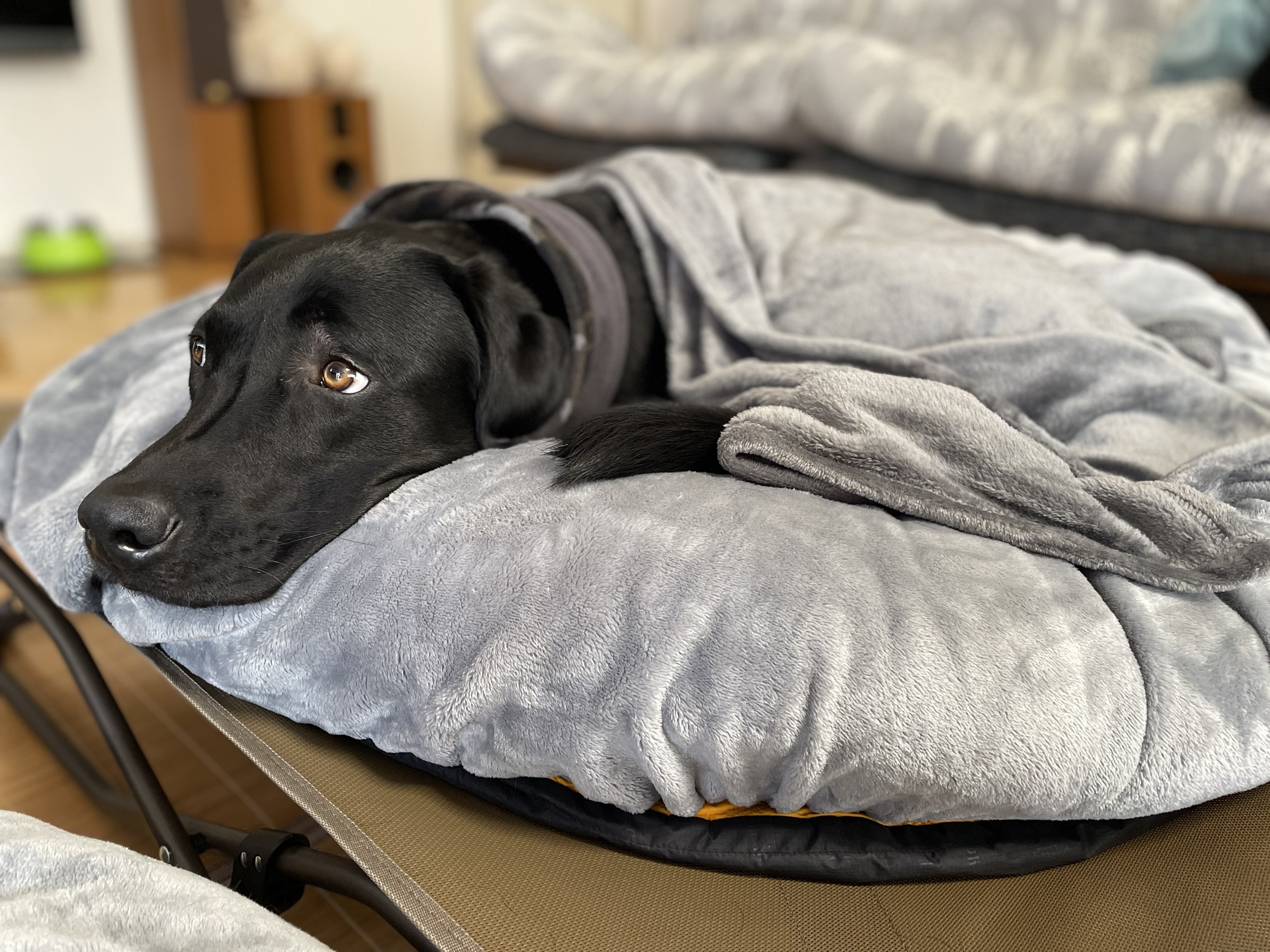諦めて、隣のコット無しマットに鎮座し、